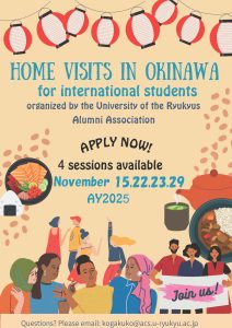 琉球大学同窓会主催の留学生ホームビジットの参加者を募集しています。
